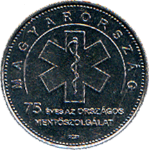 50 форинтов km#? 2023 Медно-никелевый сплав Знак(и) на монете: BP (Будапешт) 75-летие Национальной службы скорой помощи |