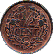 1/2 цента km#138 1934,36-38,40 Бронза Знак(и) на монете: виноград; Кадуцей (Утрехт) |