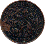 1 цент km#152 1913-22,24-31 Бронза Знак(и) на монете: морской конек; Кадуцей (Утрехт) На аверсе 17 маленьких щитов Знак(и) на других монетах: в 1937-41 гг виноград; Кадуцей (Утрехт) |
